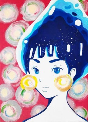 シンプルな人物画を中心に表現を続けており、創作活動のテーマは「観てくれた人が、少しでも幸せな気分になってもらえるように」